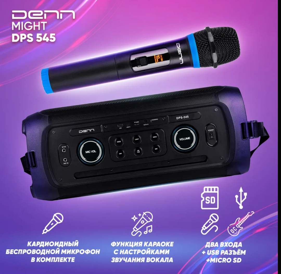 Купить Музыкальная система Denn Partybooster Might (DPS545) Портативная колонка DENN DPS545, с караоке, 50Вт, FM-радио с доставкой по всей России.