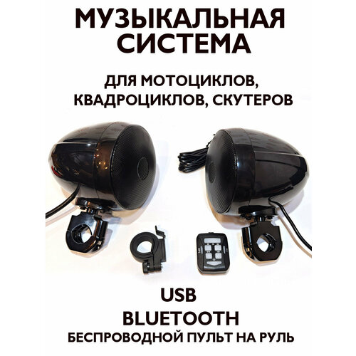 Основные особенности музыки для мотоцикла: - пульт с креплением на руль - USB - Bluetooth - Пыле/влага непроницаемость - Встроенный усилитель и предохранитель - Широкий диапазон напряжений 10-24 вольт