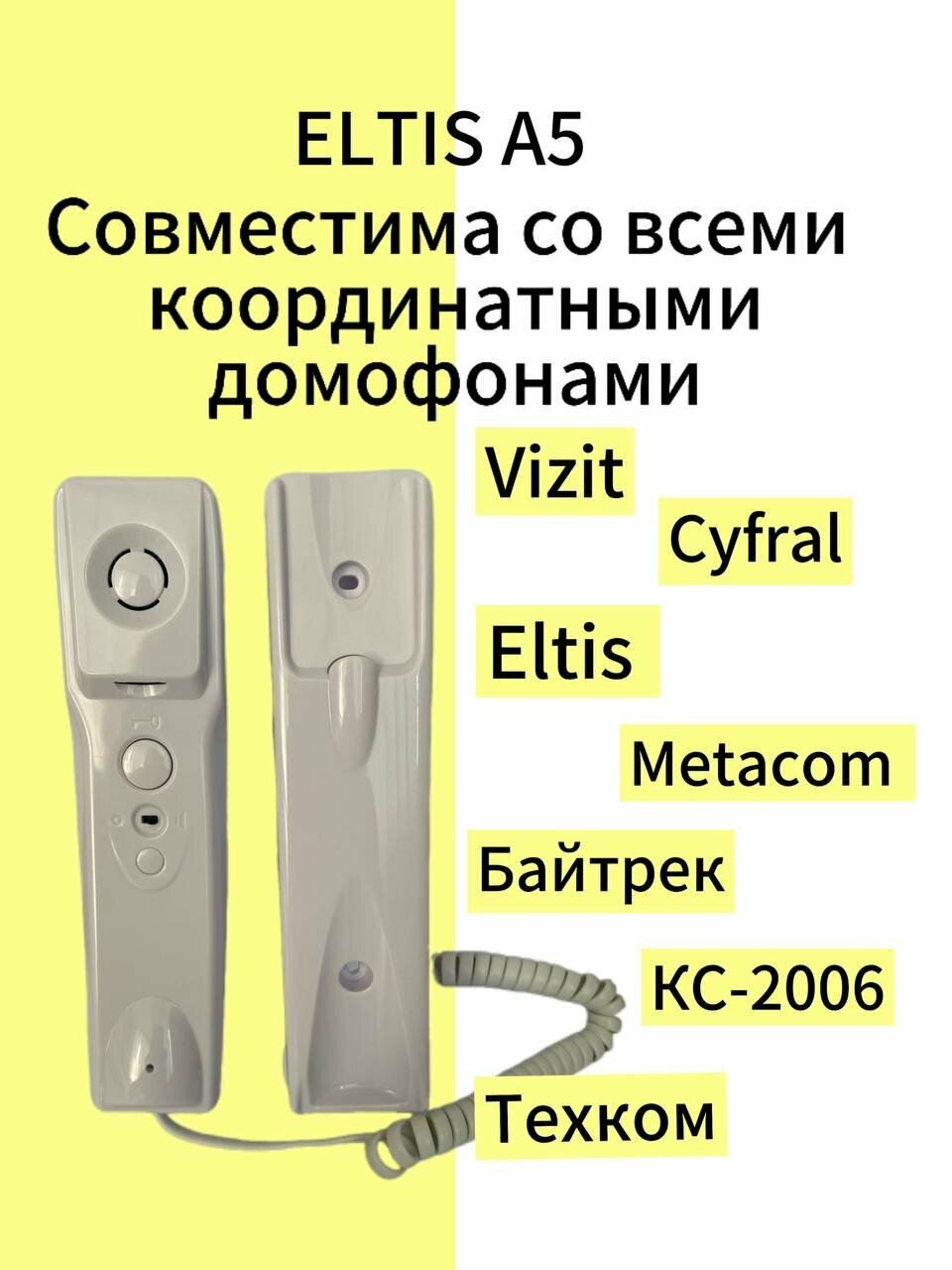 Аудиотрубка ELTIS А5, для координатных домофонов, проводная, белая, пластик: сравнение цен, характеристики, фото, актуальное наличие и цены.
