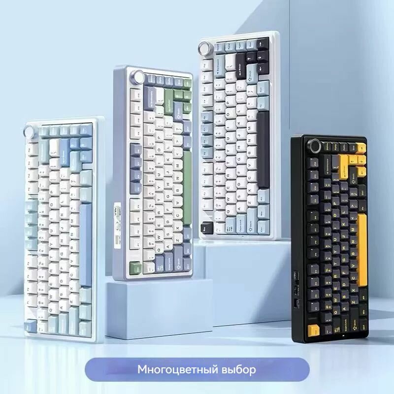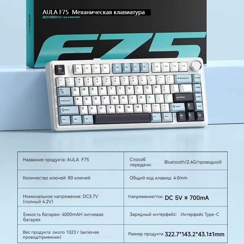 Игровая клавиатура беспроводная AULA F75 механическая , Bluetooth / 2.4GHz / USB — C, Английская раскладка, белый-светло-синий-Leobog Ice vein: сравнение цен, характеристики, фото, актуальное наличие и цены.