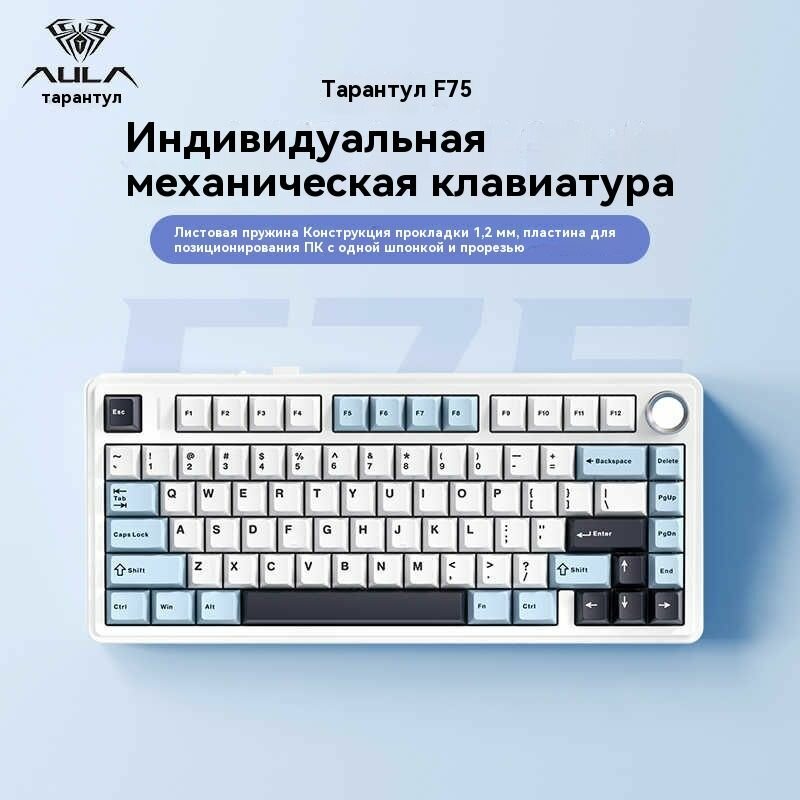 Купить AULA Игровая клавиатура проводная Трехрежимная игровая механическая клавиатура F75-Leobog Harvest, Английская раскладка, синий, черно-серый с доставкой по всей России.