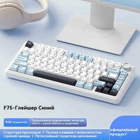 AULA Игровая клавиатура проводная Трехрежимная игровая механическая клавиатура F75-Leobog Harvest, Английская раскладка, синий, черно-серый