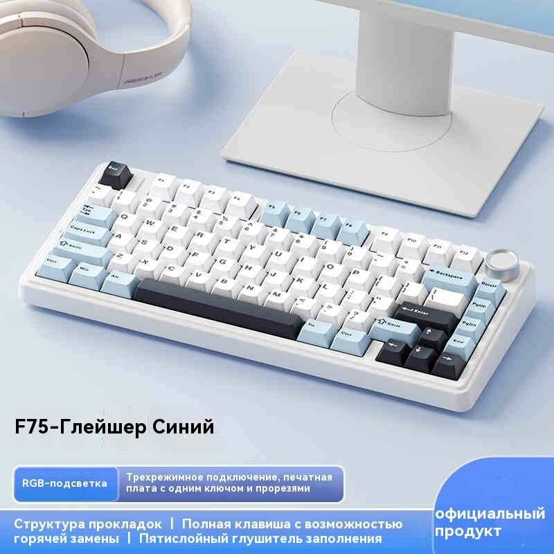 AULA Игровая клавиатура проводная Трехрежимная игровая механическая клавиатура F75-Leobog Harvest, Английская раскладка, синий, черно-серый: сравнение цен, характеристики, фото, актуальное наличие и цены.