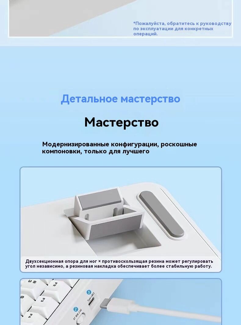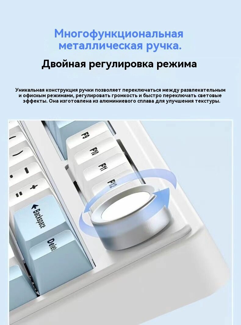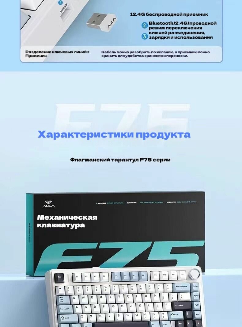 | Комплектация | Клавиатура - 1 шт; Руководство - 1 шт; Инструкция - 1 шт; 2,4 Ghz передатчик - 1 шт; Кабель Type-C на USB - 1 шт; Запасные свитчи - 2 шт; Пуллер - 1 шт; Пылезащитная Крышка - 1шт |