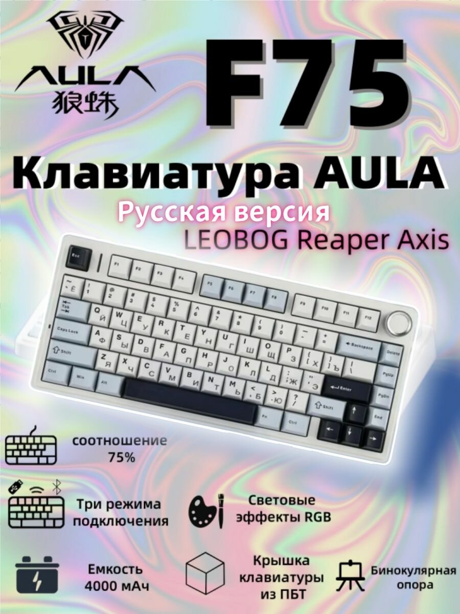 AULA Клавиатура F75, соотношение сторон 75%, 80 клавиш, специальная функция корпуса из АБС-пластика и дизайн подсветки: сравнение цен, характеристики, фото, актуальное наличие и цены.