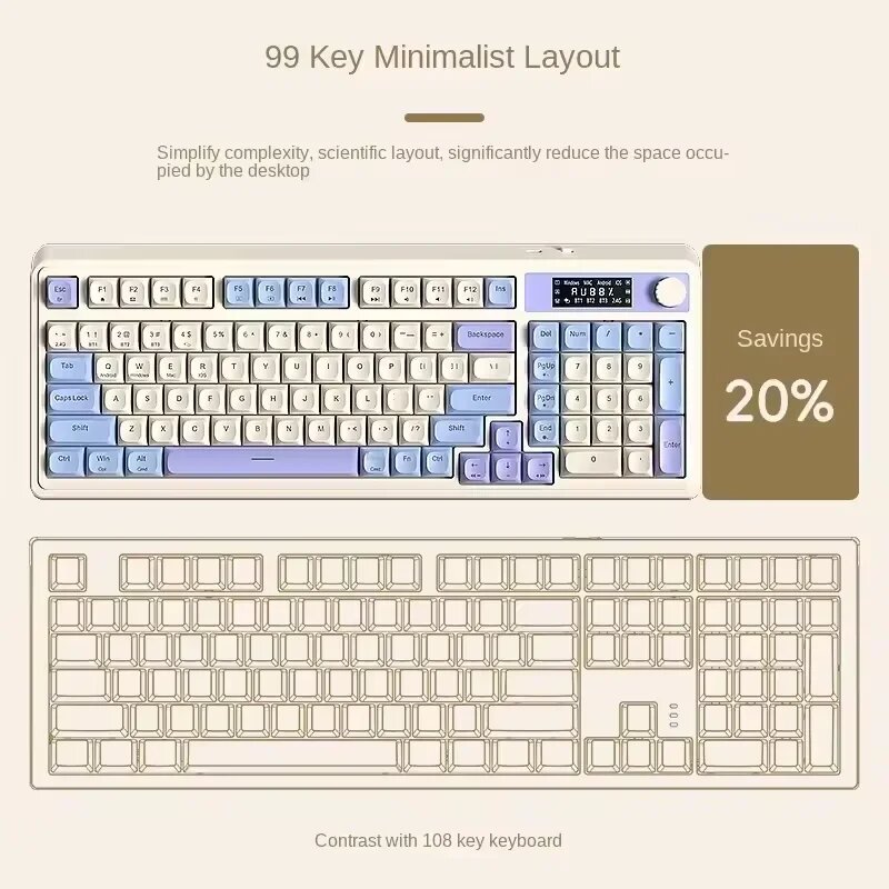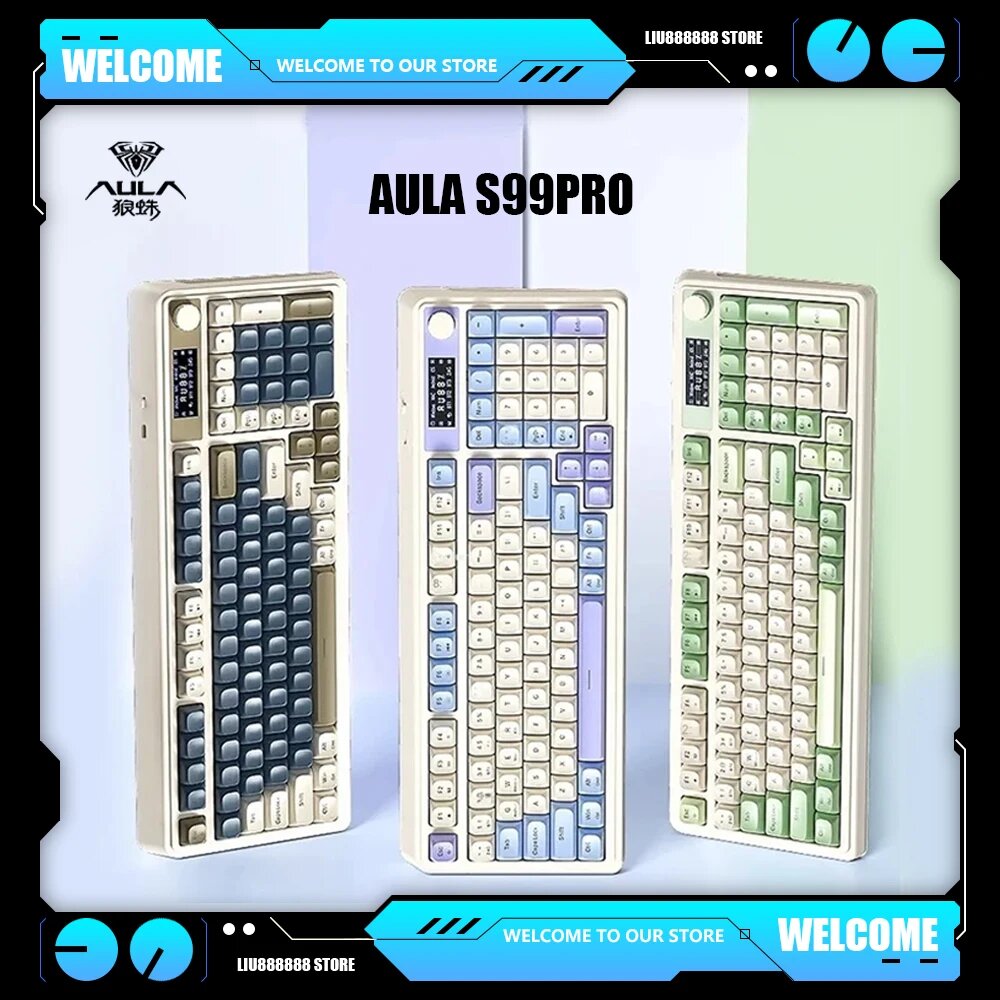 Купить Aula S99pro Bluetooth Беспроводная клавиатура Трехрежимная RGB-ручка Смарт-экран Беспроводная игровая клавиатура Специальная эргономичная клавиатура, Green с доставкой по всей России.