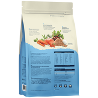 Состав: Дегидрированная рыба 30 , бурый рис, гидролизованное мясо лосося 8 , овсяные хлопья, жир индейки 8,5 , яйцо сушеное цельное 2 , отруби, белки плазмы (источник иммуноглобулинов), свекольная стружка, морковь, пивные дрожжи, семена льна, растительная клетчатка, лососевое масло 1,5 , DL-метионин, маннаноолигосахариды (MOS), фруктоолигосахариды (FOS), облепиха, минералы, витамины, псиллиум, одуванчик, хлорелла, таурин, гемоглобин, экстракт юкки Шидигера, смесь токоферолов и экстракта розмарина.