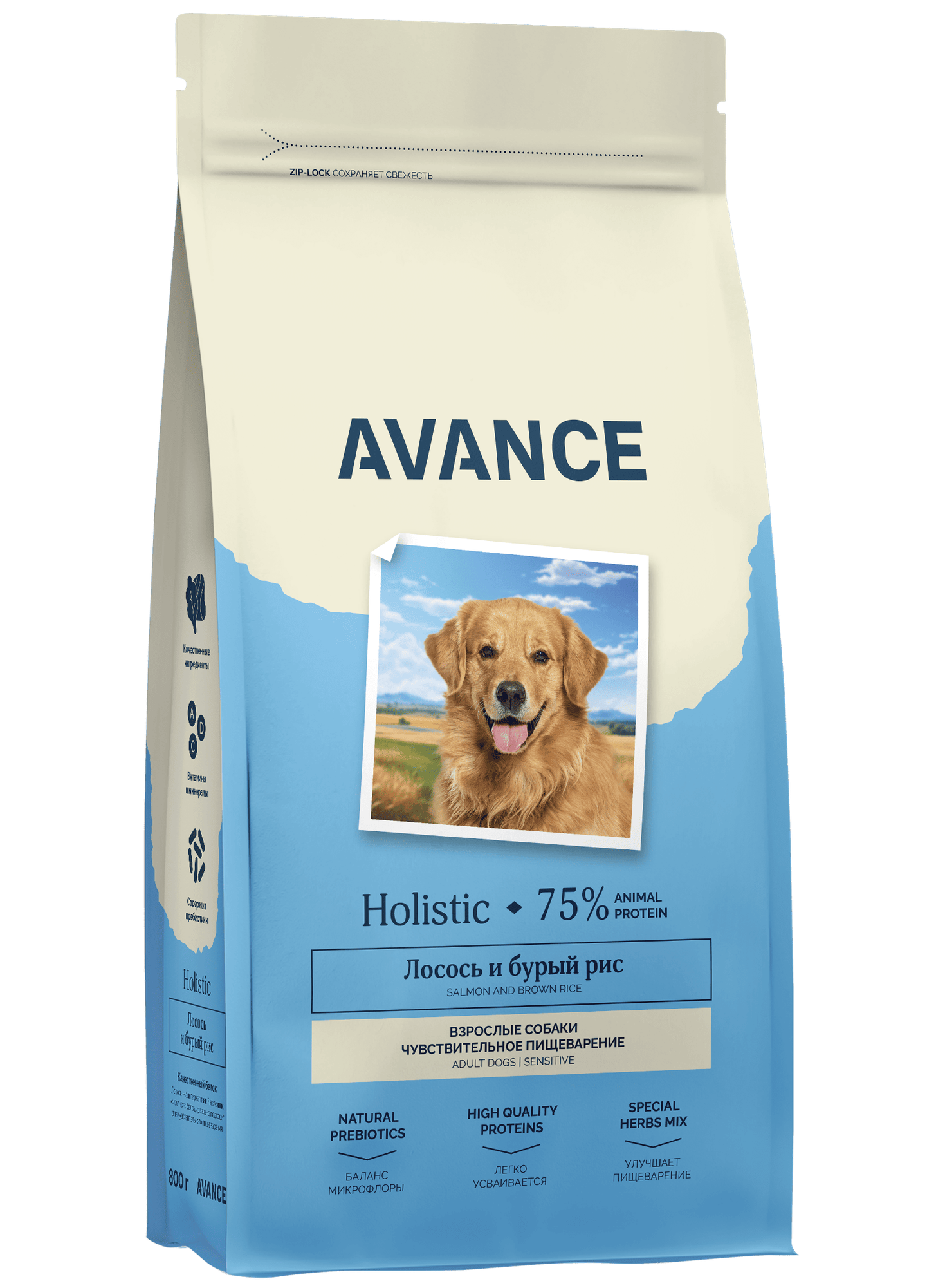 Купить AVANCE holistic Полнорационный сухой корм для взрослых собак с чувствительным пищеварением с лососем и бурым рисом, Sensitive digestion salmon and brown rice, 0,8 кг с доставкой по всей России.