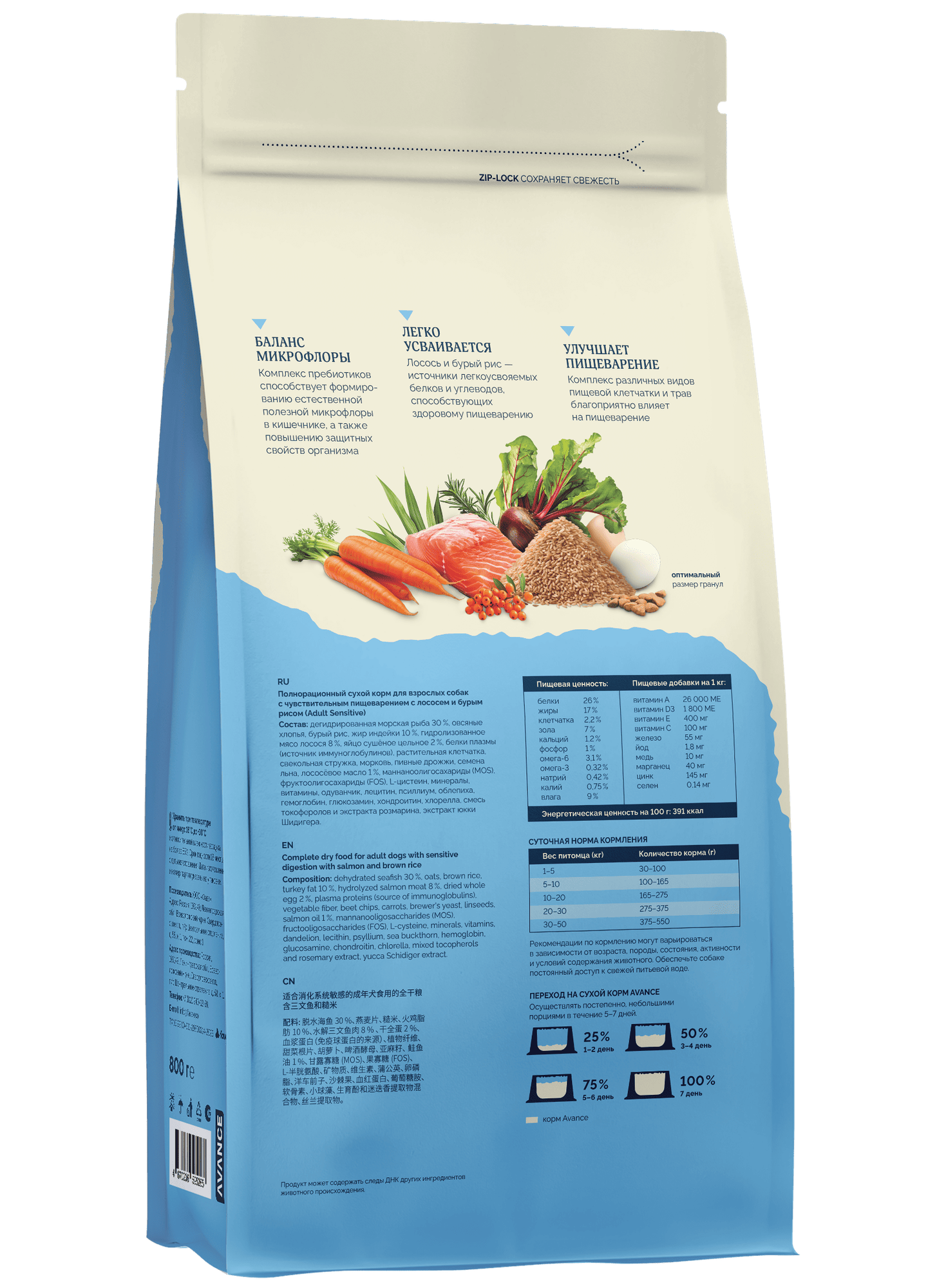 AVANCE holistic Полнорационный сухой корм для взрослых собак с чувствительным пищеварением с лососем и бурым рисом, Sensitive digestion salmon and brown rice, 0,8 кг: сравнение цен, характеристики, фото, актуальное наличие и цены.