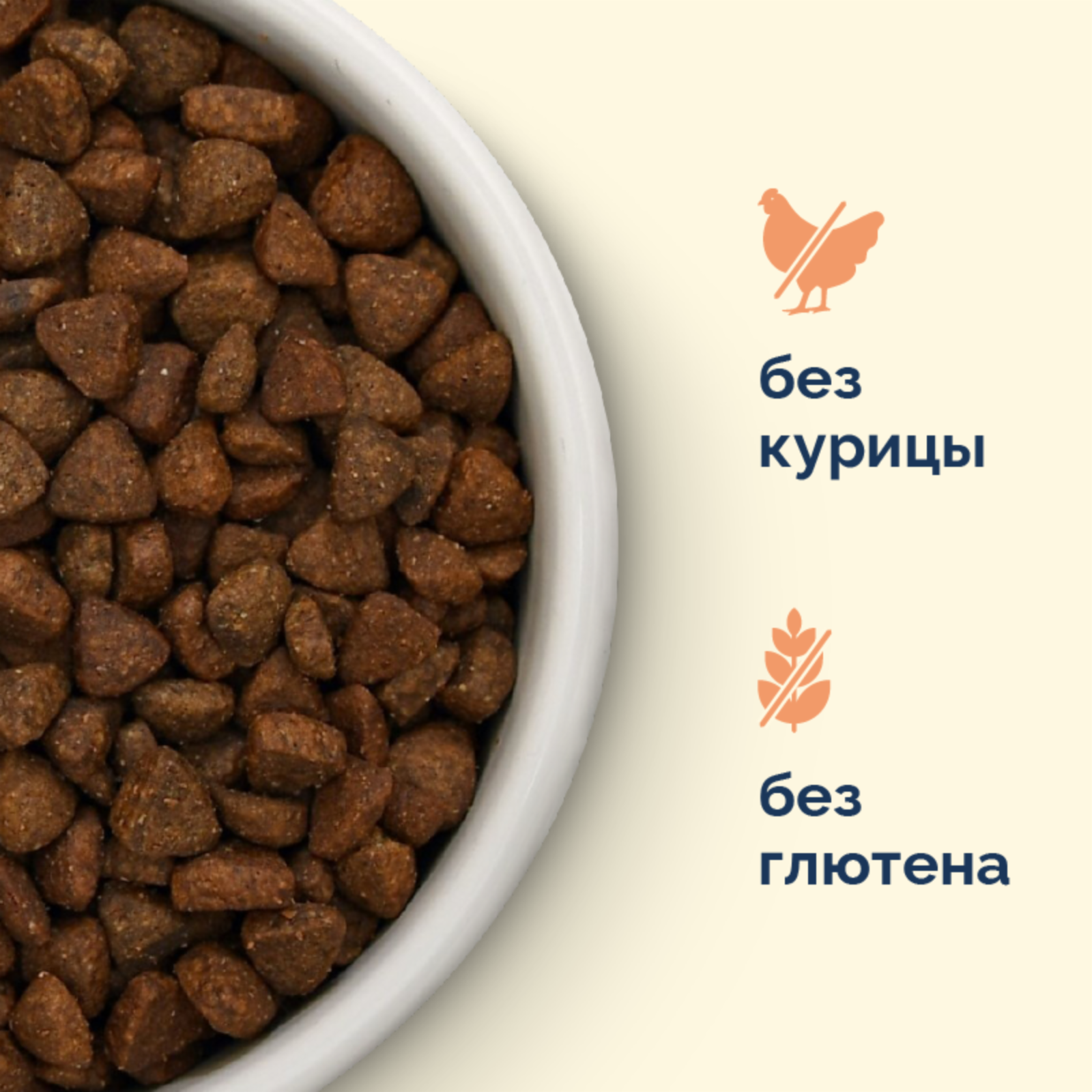 - гипоаллергенный - один вид мяса в составе, отсутствие курицы и глютена минимизирует риск развития аллергической реакции у питомца;