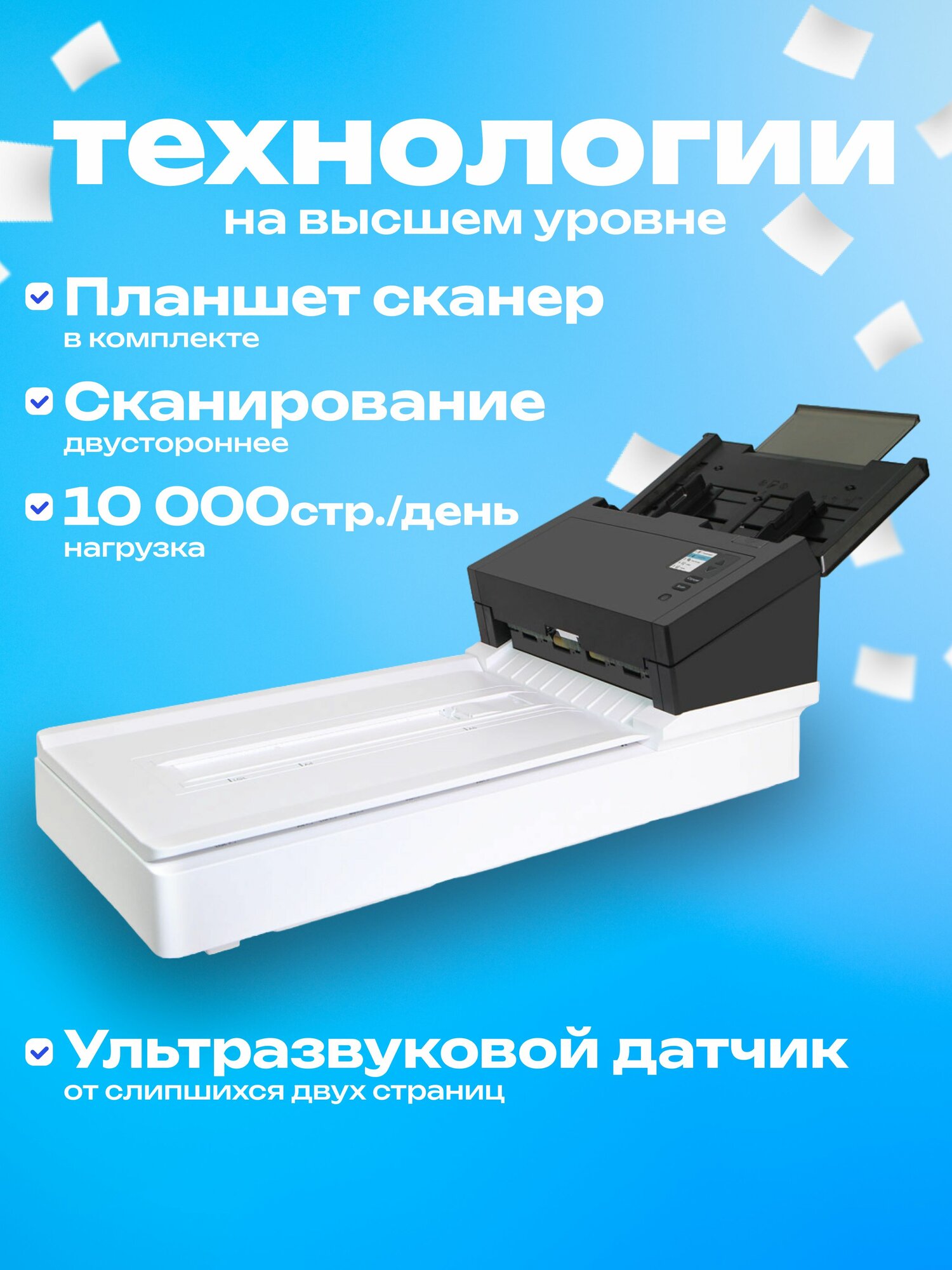 Avision AD360GF — это высокопроизводительный сетевой документ-сканер с автоподатчиком, предназначенный для быстрого и удобного сканирования больших объемов документов. Идеально подходит для использования в офисах, где требуется высокая производительность и надежность. Основные характеристики: Тип сканера: Планшетный с автоподатчиком Разрешение сканирования: до 1200 x 1200 dpi Скорость сканирования: до 80 страниц в минуту (цветное/черно-белое) Формат бумаги: A4, A5, A6, Letter, Legal, фотографии Подключение: USB3.2 Gen1x1 Совместимость: Windows, macOS, iOS, Android Поддержка облачных сервисов: Google Drive, Dropbox, Evernote и другие Размеры: 754 x 321 x 301,4 мм Вес: 6.9 кг Преимущества: Сетевое подключение по Ethernet для удобства использования в офисах. Высокая скорость и качество сканирования. Автоподатчик для сканирования больших объемов документов. Надежный и производительный дизайн. Поддержка облачных сервисов для быстрой отправки отсканированных документов. Идеально для офисов с высокими требованиями к производительности. Комплектация: Сканер Avision AD360GF Руководство пользователя Гарантия: Официальная гарантия производителя — 2 года. Купить Avision AD360GF — сетевой документ-сканер с автоподатчиком и Ethernet. Высокая скорость сканирования, поддержка облачных сервисов. Идеально для офисов. Avision AD360GF, сетевой сканер, документ-сканер, автоподатчик, Ethernet, облачные сервисы, сканирование документов