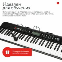 Размер клавиш составляет 13x2.2 см, что позволит вам удобно играть на инструменте и не уставать. Синтезатор работает от сети или от батареек, что делает его мобильным и удобным для использования в любом месте.