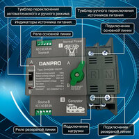 АВР устройство автоматического ввода резерва DANPRO DANQ5B-100/2 используется для автоматического перехода на резервную систему питания в трёхфазных сетях переменного тока с частотой сети 50 Гц номинальным рабочим напряжением 220 ~ 240 В и номинальным рабочим током до 100 А. Для работы на промышленных, коммерческих и жилых объектах.