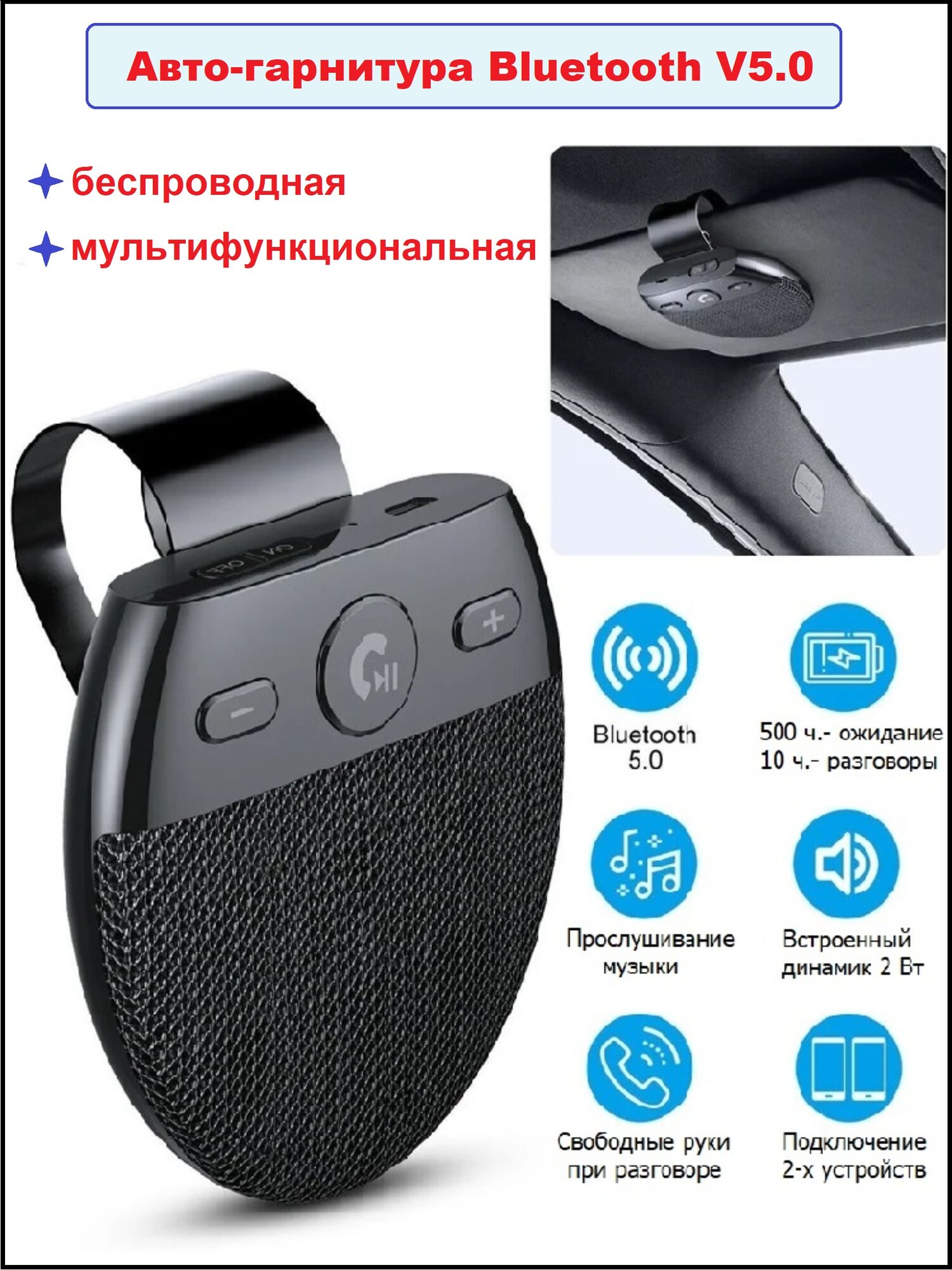Купить Авто-гарнитура Bluetooth V5.0 для авто, беспроводная, черная с доставкой по всей России. Авто-гарнитура Bluetooth V5.0 для авто, беспроводная, черная: сравнение цен, характеристики, фото, актуальное наличие и цены.