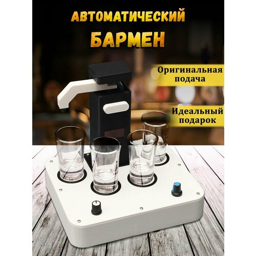 Представляем Вашему вниманию автоматический наливатор алкоголя версия 2.5 с обновленным дизайном! С нашем автобарменом Вам не нужно будет больше наливать гостям на застолье, все сделает наш робот-бармен. Все что требуется, выбрать количество миллилитров для розлива и поставить рюмки в пазы, наливатор автоматически разольёт напитки. Отличным плюсом идет то, что он произносит тосты после разлива. Так же есть музыка при простое, её можно отключить. В автоматическом бармене даже есть застольные игры, они описаны в инструкции. Автоналив по рюмкам происходит поровну, или не поровну, если включен режим застольной игры. Одновременно можно установить 4 рюмки для поочередного автоматического разлива напитка. Наша наливайка в рюмки станет прекрасным украшением на любом застолье, и возьмет часть работы на себя. Станет отличным оригинальным подарком на день рождения, 23 февраля, новый год или другие праздники. Наш диспенсер алкоголя позволит точно налить в рюмки выбранное количество напитка. Наш автоматический наливатор станет отличным подарком мужу, брату и другим близким людям. Автоматический дозатор работает от сети, провод и адаптер идет в комплекте. Наливатор поставляется со специальными рюмками в комплекте, в дно которых установлен небольшой магнит. Он нужен для того, чтобы наливатор понимал, что рюмка стоит в пазу, обычные рюмки не подойдут. SD карта находится внутри наливатора, для того что бы загрузить новую музыку на нее, необходимо подключить автобармен к компьютеру через шнур, который поставляется в комплекте. Так же прилагаем инструкцию для использования. Всем удачи и приятного времяпровождения в компании с Автоналиватором! Для калибровки носика аппарата(если она сбилась) пользуйтесь инструкцией ниже: На выключенном аппарате нажмите у удерживайте синий энкодер и включайте не отпуская энкодер! На экране загорится цифра 0 и носик должен оказаться над первой рюмкой отпустите энкодер, нажмите повторно, носик должен встать над второй рюмкой. Крутите энкодер, чтобы отцентровать носик над второй рюмкой. Как положение Вас устроит, снова нажмите на энкодер. Далее с остальными рюмками делайте так же.