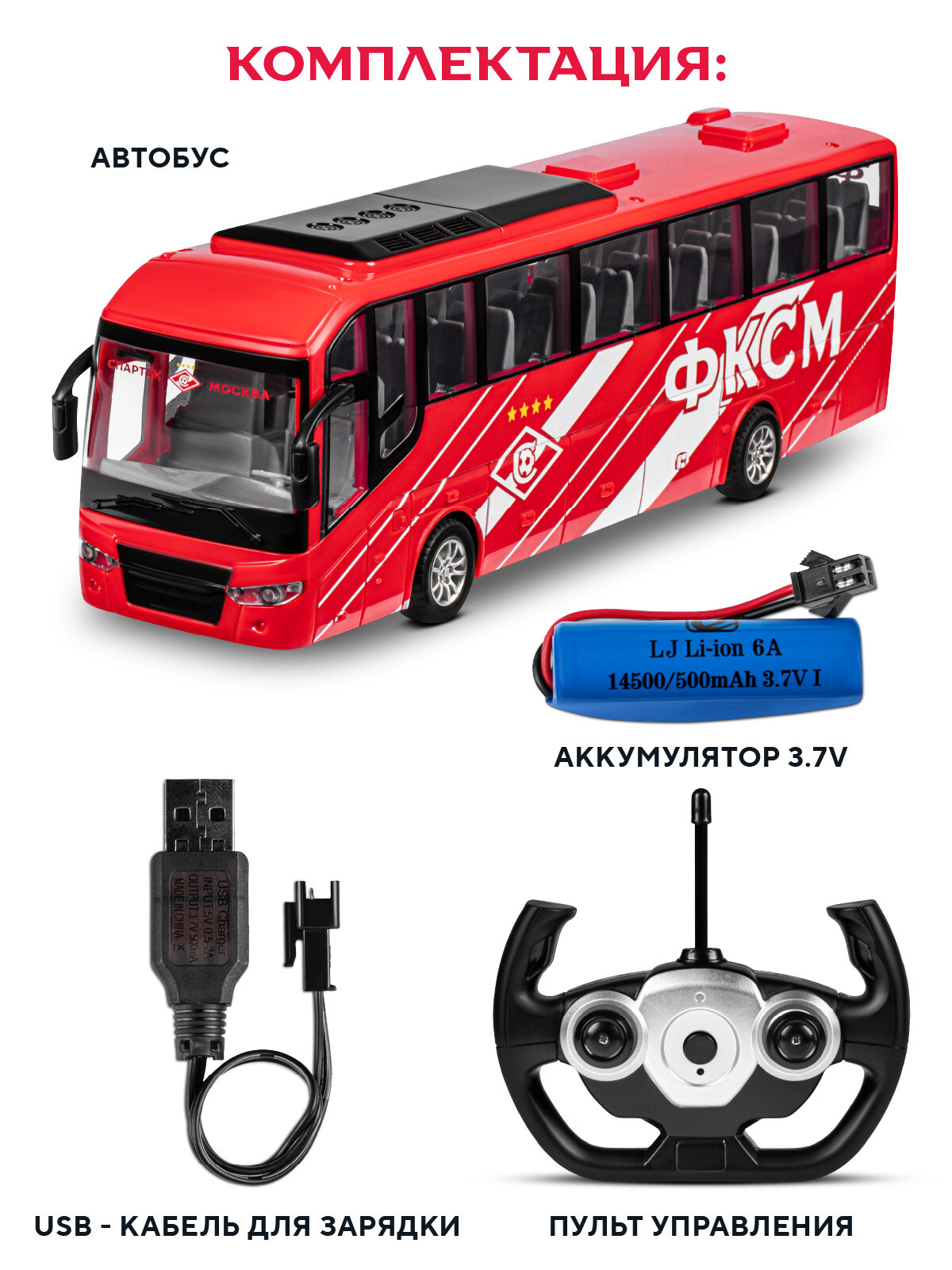Купить Автобус на радиоуправлении ФК Спартак, машинка с аккумулятором на пульте управления, свет, JB0405314 с доставкой по всей России.