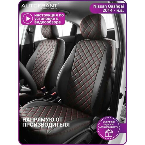 Купить Авточехлы AUTOFRANT, для Nissan Qashqai J11, экокожа, черный/красный, жаропрочные с доставкой по всей России.