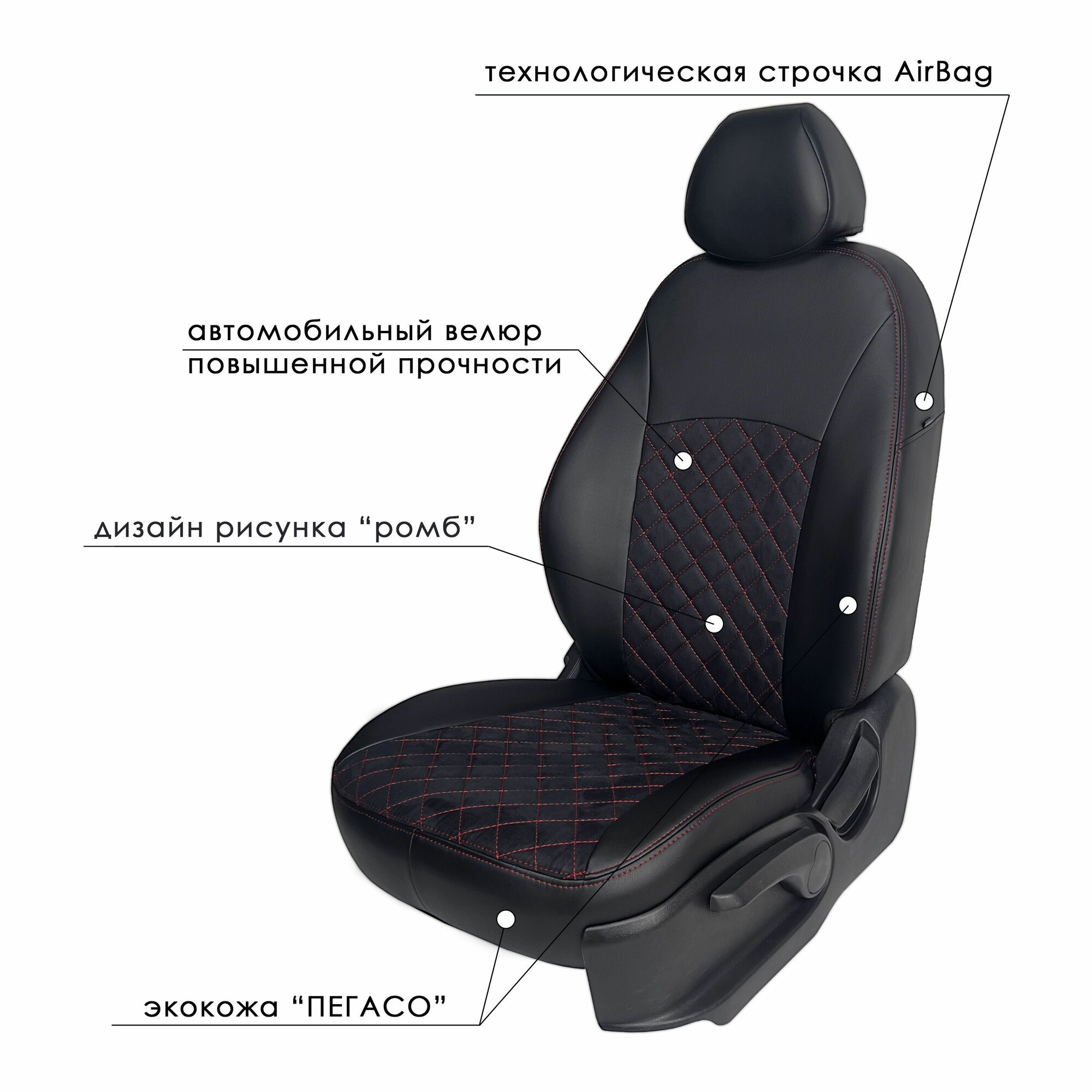на подголовник, на подлокотник, на сиденье, на спинку