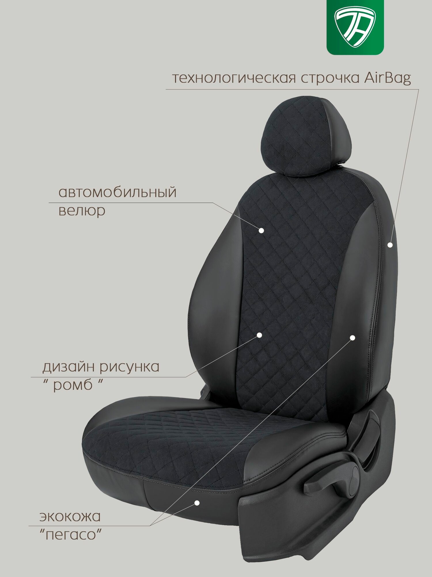 на подголовник, на подлокотник, на сиденье, на спинку