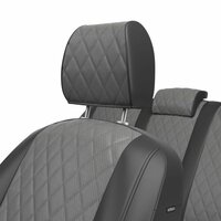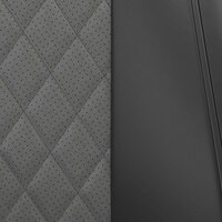 Материал центральной части - мягкая Экокожа ромб с перфорацией, толщина 1.1 мм. Цвет - Темно-Серый + подкладка 5 мм, из антиаллергенного поролона для дополнительного комфорта и модельной посадки на сиденье.