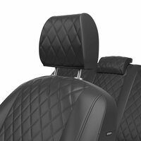 Материал центральной части - мягкая Экокожа ромб с перфорацией, толщина 1.1 мм. Цвет - Черный + подкладка 5 мм, из антиаллергенного поролона для дополнительного комфорта и модельной посадки на сиденье.