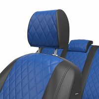 Материал центральной части - мягкая Экокожа ромб с перфорацией, толщина 1.1 мм. Цвет - Синий + подкладка 5 мм, из антиаллергенного поролона для дополнительного комфорта и модельной посадки на сиденье.