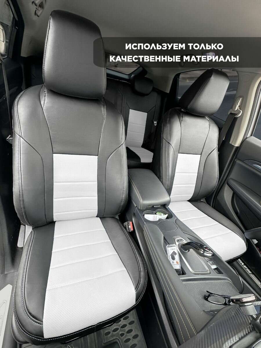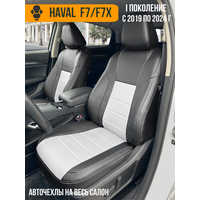 В данной карточке представлены модельные авточехлы для Haval F7 и F7X 1-ого поколения (Хавал Ф7 и Ф7Х). Комплект изготовлен из высококачественной экокожи толщиной 1мм. Лекала, по которым пошиты авточехлы, разработаны нами и соответствуют лекалам заводских сидений. На местах срабатывания подушек безопасности сделаны специальные швы, которые обеспечивают полностью штатное срабатывание систем безопасности. Лицевые посадочные места выполнены из триплированной, перфорированной экокожи и усилены слоем спанбонда 100г/кв. м, что препятствует растяжению и образованию морщин в процессе эксплуатации. Благодаря высокой теплопроводности материалов время работы подогрева сидений не увеличивается.