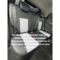 В пошиве используется шёлковая нитка тройной скрутки. Совместно со стандартными креплениями мы используем, не имеющую аналогов, систему крепления на стропы, надёжно притягивающую центральную часть чехла к сиденью, не позволяющую ему двигаться вперед-назад.