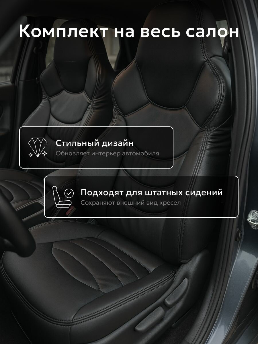Универсальные авточехлы из экокожи с боковыми поддержками / автомобильные чехлы из экокожи черно-серые
