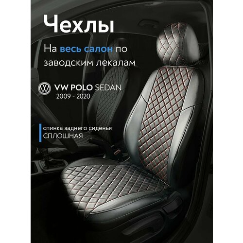 Авточехлы на сидения для Фольксваген Поло (Volkswagen Polo Sd) 2009-2020 г. в. (спинка заднего сидения 40/60, без подлокотника), из экокожи, Ромб, черные с красной строчкой: сравнение цен, характеристики, фото, актуальное наличие и цены.