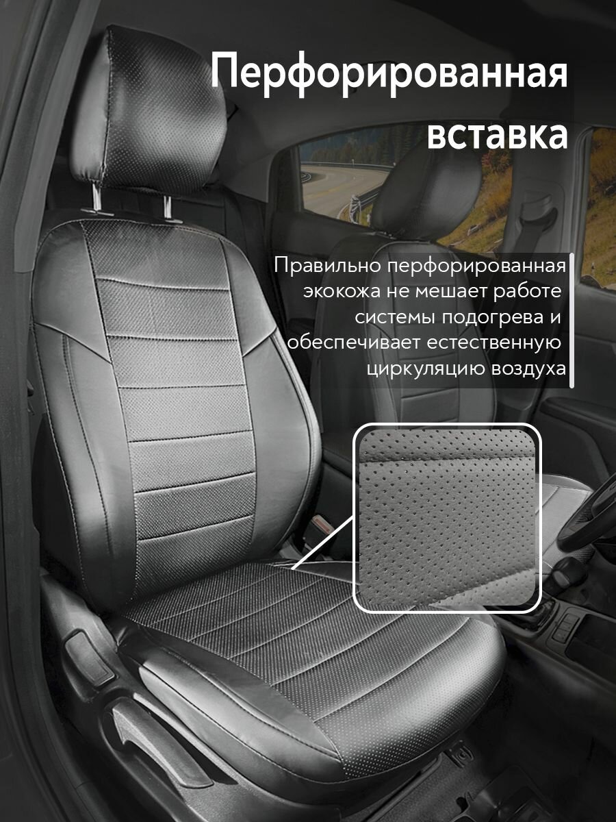 Купить Авточехлы на сидения для Лады Ларгус (Lada Largus) / Ларгус Кросс (Largus Cross) 2012-2021 г. в. (5 мест, спинка заднего дивана 40/60) из Экокожи, черные с доставкой по всей России.