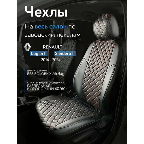 Автомобильные чехлы подойдут на Renault Logan 2 ( Рено Логан 2 ) 2014, 2015, 2016, 2017, 2018, 2019, 2020, 2021, 2022, 2023, 2023 года выпуска. Спинка заднего сидения 60/40, раздельная (малая часть за водителем).