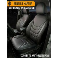 В данной карточке представлены модельные авточехлы Renault Kaptur с 2016 года выпуска по настоящее время. Комплект изготовлен из высококачественной экокожи толщиной 1мм. Лекала, по которым пошиты авточехлы, разработаны нами и соответствуют лекалам заводских сидений. На местах срабатывания подушек безопасности сделаны специальные швы, которые обеспечивают полностью штатное срабатывание систем безопасности. Лицевые посадочные места выполнены из триплированной, перфорированной экокожи и усилены слоем спанбонда 100г/кв. м, что препятствует растяжению и образованию морщин в процессе эксплуатации. Благодаря высокой теплопроводности материалов время работы подогрева сидений не увеличивается. В пошиве используется шёлковая нитка тройной скрутки. Совместно со стандартными креплениями мы используем, не имеющую аналогов, систему крепления на стропы, надёжно притягивающую центральную часть чехла к сиденью, не позволяющую ему двигаться вперед-назад.
