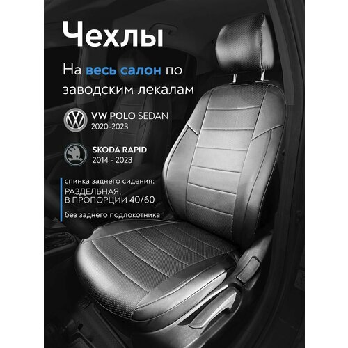 Авточехлы Шкода Рапид 2014-2023 г. в. (Skoda Rapid)/ Фольксваген Поло 2020-2023 г. в.(Volkswagen Polo sd)(без подлокотника, спинка заднего сидения 40/60), из экокожи, черные: сравнение цен, характеристики, фото, актуальное наличие и цены.