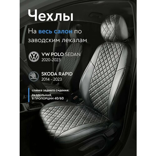 Авточехлы Шкода Рапид 2014-2023 г. в. (Skoda Rapid)/ Фольксваген Поло 2020-2023 г. в.(Volkswagen Polo sd), (спинка заднего сидения 40/60), из экокожи, ромб, черные: сравнение цен, характеристики, фото, актуальное наличие и цены.