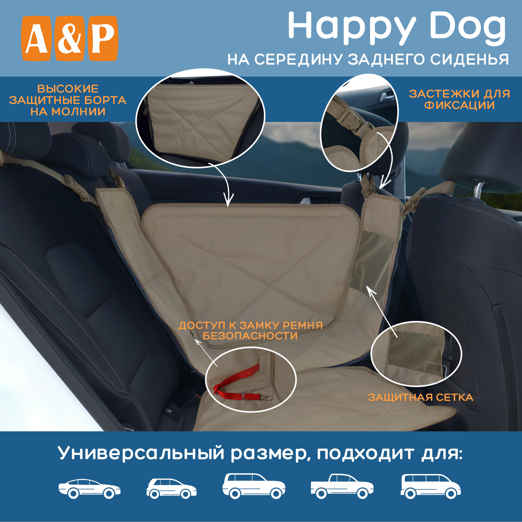 Автогамак для собак Happy Dog (Хэппи Дог). На середину заднего сиденья. Цвет: бежевый с бежевой окантовкой.: сравнение цен, характеристики, фото, актуальное наличие и цены.