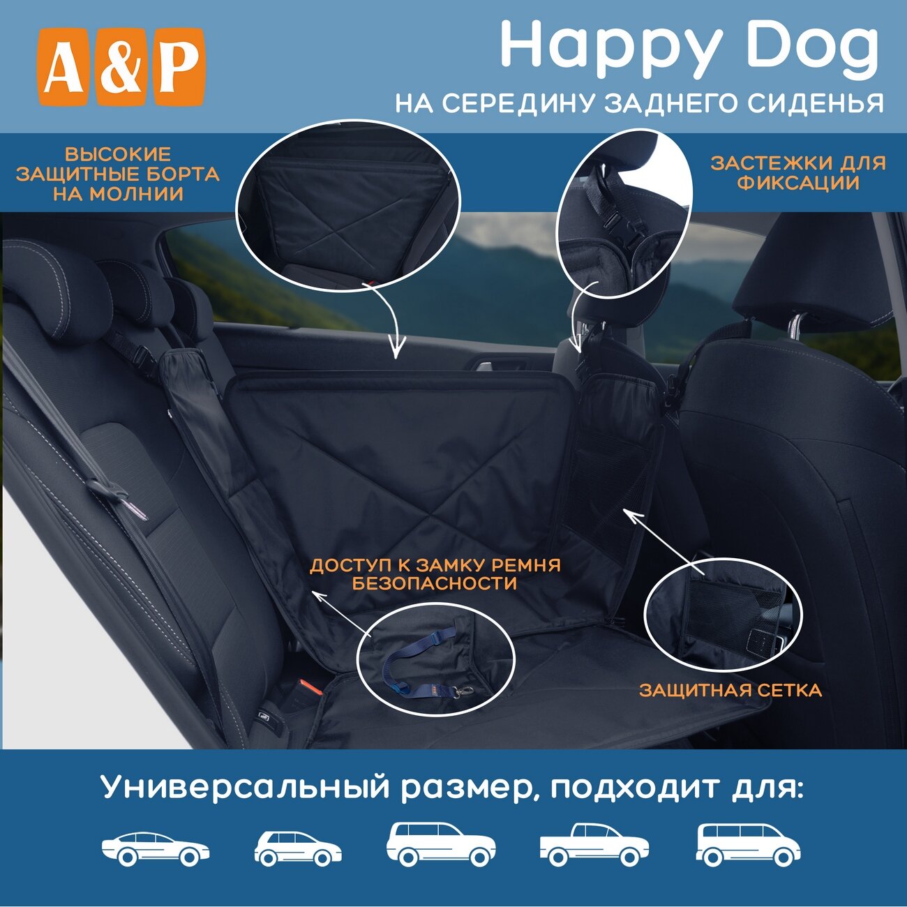 Автогамак для собак Happy Dog (Хэппи Дог). На середину заднего сиденья. Цвет: черный с черной окантовкой.: сравнение цен, характеристики, фото, актуальное наличие и цены.