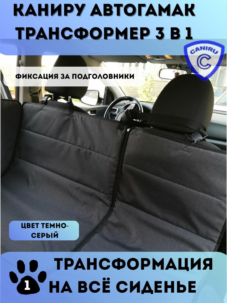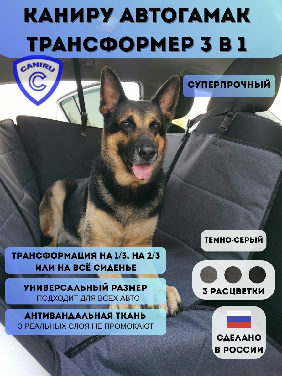 Купить Автогамак для собак трансформер Caniru, 3слоя Темно-Серый . Можно использовать на 3, 2 или 1 части заднего сиденья Без прорезей для ремней безопасности с доставкой по всей России.