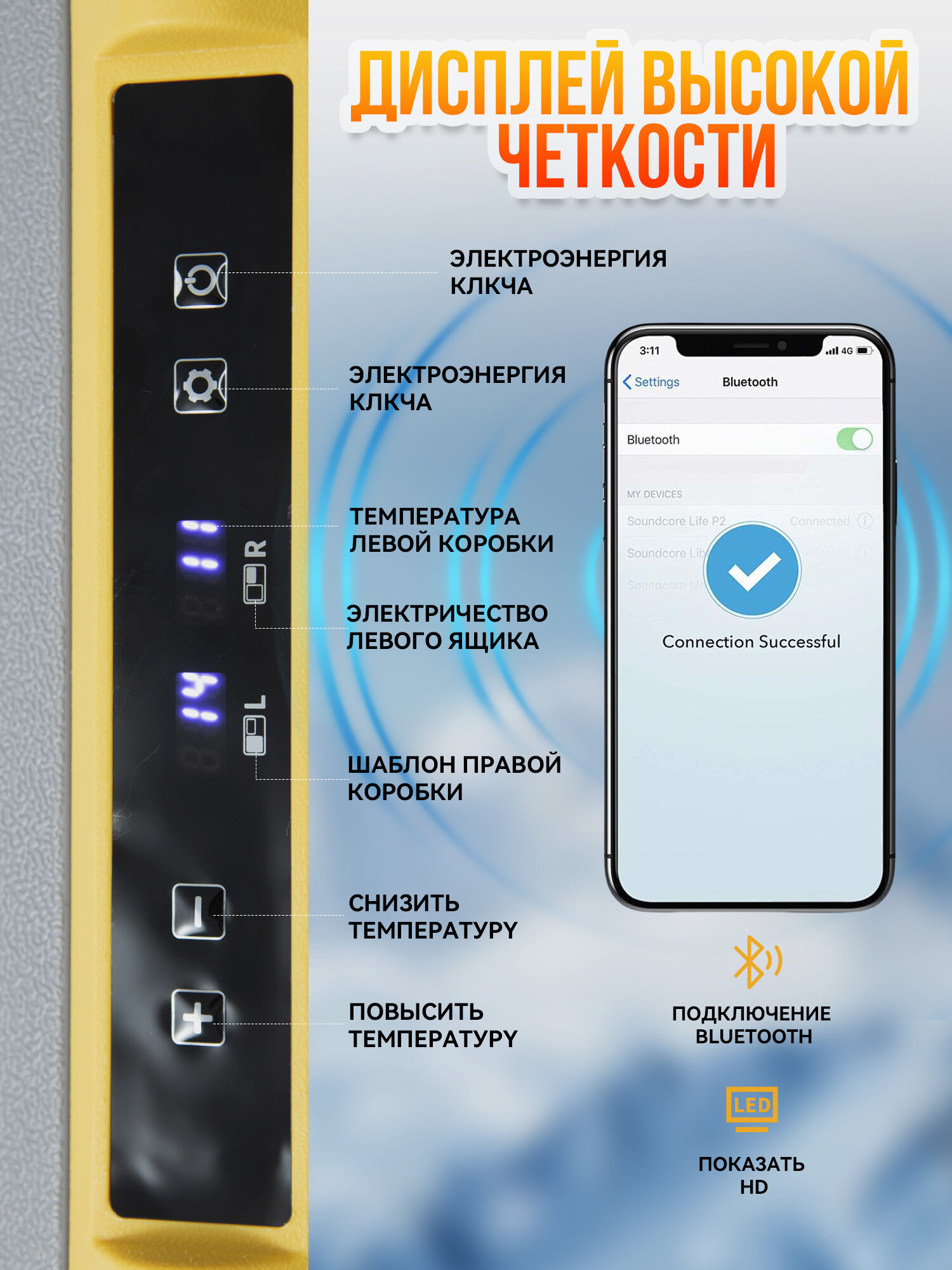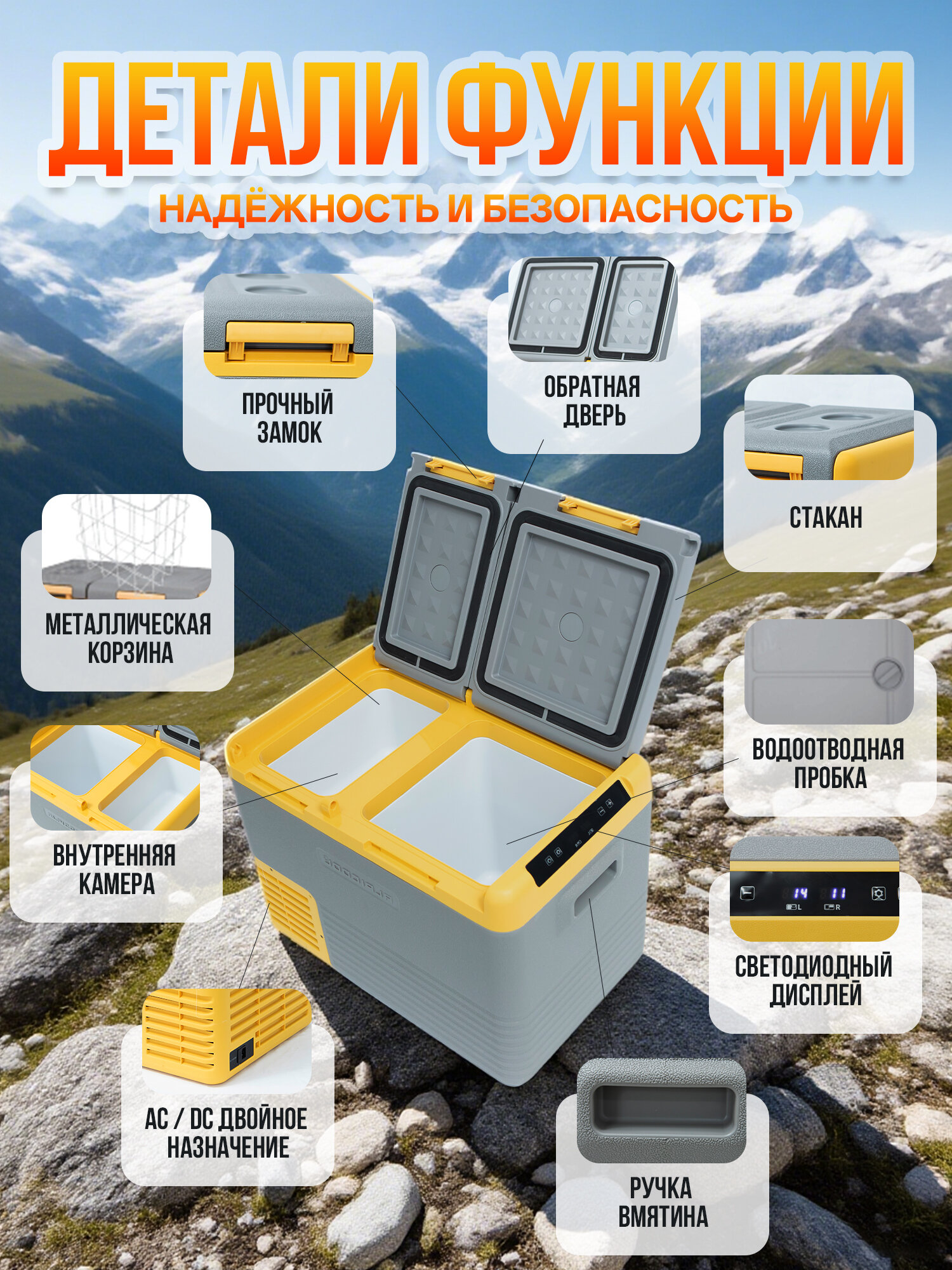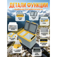| Дополнительная информация | инверторный компрессор постоянного тока; хладагент R134a экологически безопасный; 3-уровневая защита аккумулятора, автоматическое отключение при низком напряжении; устойчивость при наклоне 45°; уровень шума 45 дб; управление через приложение; LED-дисплей с точным контролем температуры; USB-порт; складная ручка для переноски; легкодоступное сливное отверстие; уплотнитель дверцы; Толстая пенополиуретановая изоляция |