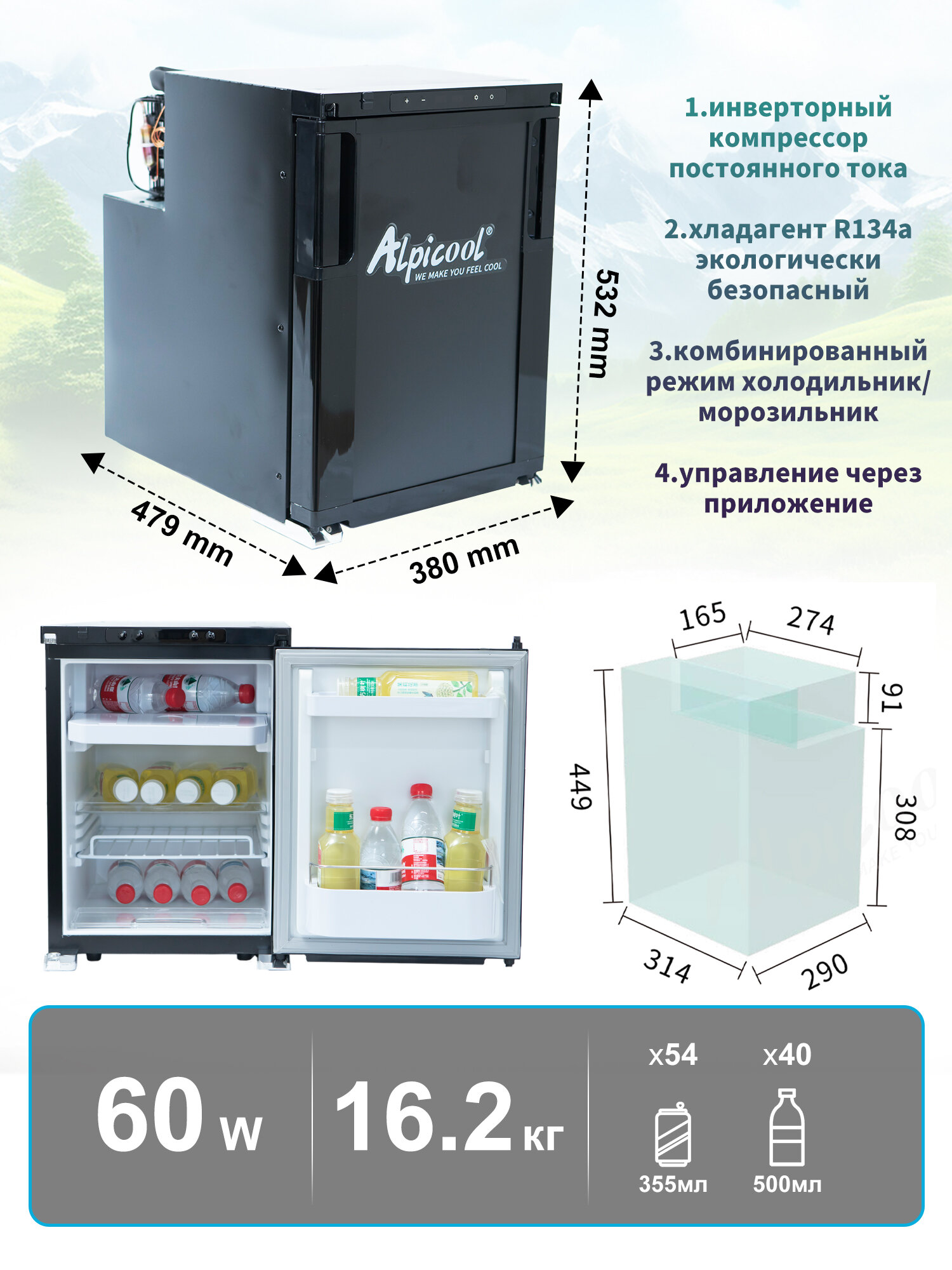 Автохолодильник Alpicool R50, двухкамерный, 42.8 литров, 12В/24В/220В, инверторный: сравнение цен, характеристики, фото, актуальное наличие и цены.