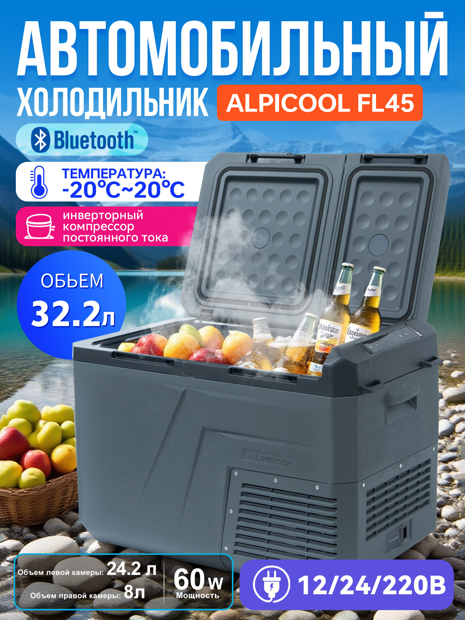 Автохолодильник компрессорный Alpicool FL45, 12/24/220 В — мощный холодильник для автомобиля, кемпинга и дальних поездок: сравнение цен, характеристики, фото, актуальное наличие и цены.