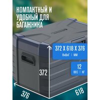 Надежная защелка двери не пропускает холодный воздух, гарантируя длительное сохранение нужной температуры. Для расширения функциональности предусмотрена возможность подключения устройства к бытовой сети 220 В с помощью отдельно приобретаемого адаптера.