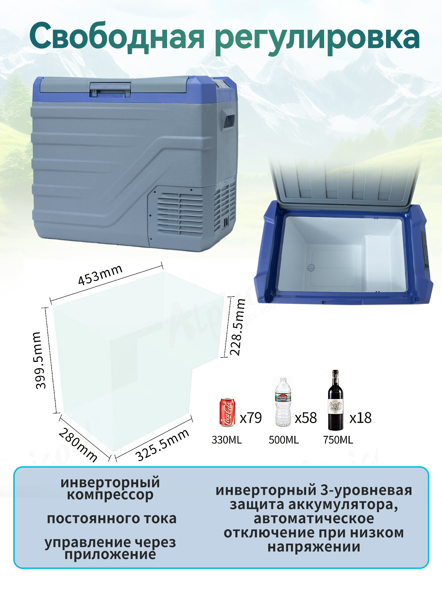 Alpicool NL50 (12/24) — портативный автомобильный холодильник, созданный для хранения продуктов во время поездок, рыбалки, дальнобойного рейса или пикника. Универсальная конструкция позволяет использовать устройство в различных транспортных средствах, включая грузовые и легковые автомобили, автодома, яхты и катера.