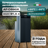 Автохолодильник компрессорный AF-DB90X это одна из самых востребованных встраиваемых моделей. Он предназначен для установки в микроавтобусах, грузовиках, на яхтах, катерах и конечно же в автодомах и кемперах. Имеет большой объём на 91 л и возможность питания от сети 12/24 В. Автохолодильник 12в 220в разделён на две камеры: для охлаждения и для обычной или глубокой заморозки (до -20°C).
