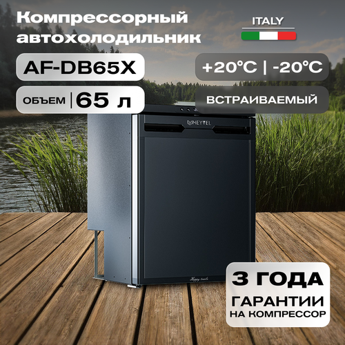 Автохолодильник AF-DB65X это одна из самых востребованных встраиваемых моделей. Он предназначен для установки в микроавтобусах, грузовиках, на яхтах, катерах и конечно же в автодомах и кемперах. Имеет большой объём на 65 л и возможность питания от сети 12/24 В. Холодильник разделён на две камеры: для охлаждения и для обычной или глубокой заморозки (до -20°C).