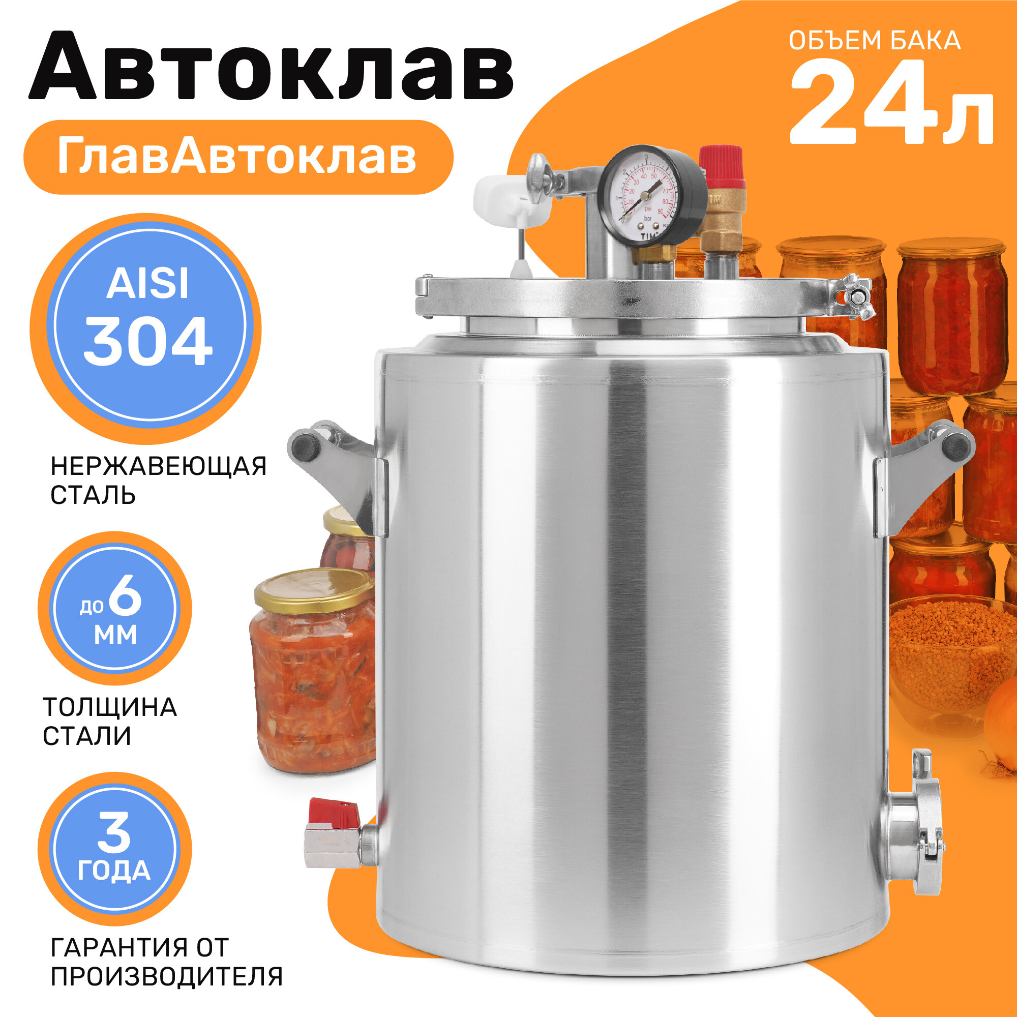 Автоклав для домашнего консервирования ГлавАвтоклав 24 л паровой: сравнение цен, характеристики, фото, актуальное наличие и цены.
