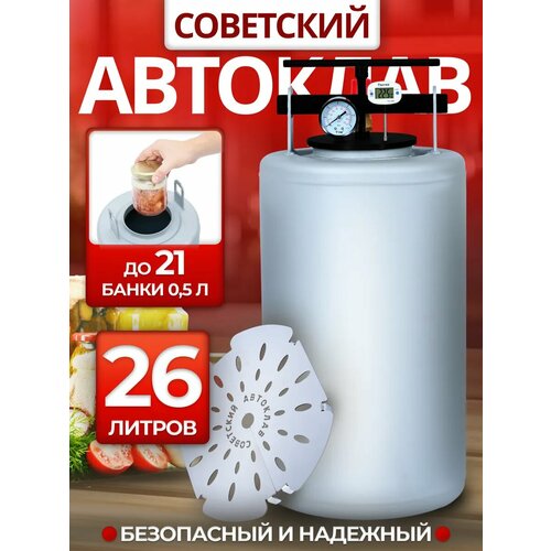Автоклав «Советский», для домашней тушенки, металл, 26 л, встроенный термометр и манометр: сравнение цен, характеристики, фото, актуальное наличие и цены.