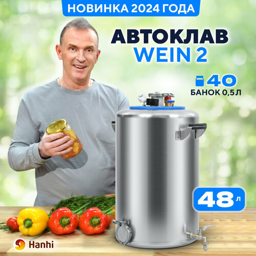 Автоклав домашний Wein 2 для консервирования 48л / Вейн 2 Kонструкция aвтоклaвa Wеin 2 была рaзрaботана тaким обpазом, чтобы пpoцecс aвтоклавирования был для вас удобным, понятным и простым. Именно поэтому мы усовершенствовали модель, подойдя к ее разработ-ке комплексно и тщательно. 1. Крышка автоклава Только для автоклава Wеin 2 специально разработана уникальная быстросьемная крышка с байонетным соединением, обеспечивающая герметичность автоклава. Байонет - это простая, но очень надежная система крепления, которая помогает быстро соединить корпус автоклава с крышкой с помощью осевого поворота. Быстрая и качественная фиксация во всех точках опоры обеспечивает плотное прилегание и герметичность. Одним движением крышка вставляется и герметично закрывает автоклав - это сводит к минимуму время на подготовку и обслуживание аппарата. Крышка обладает еще одной уникальной функцией - перевернув ее, вы легко спрячете все приборы и компактно разместите автоклав в любом удобном для вас месте. 2. Вспомогательные ручки на крышке Выполнены из пищевой медицинской стали АISI 304 и обернуты в синие резиновые вставки, что обеспечивает удобство пользования крышкой без риска обжечься. Рекомендуем пользоваться ими при открытии и закрытии крышки, т. к. надежные силиконовые колпачки обеспечат долговечность использования, к тому же их удобно мыть. 3. Умный клапан (клапан продувки) Больше не нужно дожидаться стравливания воздуха и перекрывать кран вручную - благодаря инновационному клапану автоклав сам выйдет в рабочий режим. Обратный клапан изготовлен из стали АISI 304 и имеет выверенную конструкцию, которая позволяет воздуху беспрепятственно выходить из автоклава. 4. Бак автоклава Бак автоклава Wеin 2 изготовлен из стали АISI 304 и имеет правильную выверенную форму. При его изготовлении используется метод плазменной сварки. Данный вид сварки также применяется при изготовления авиационных конструкций. 5. Штампованное дно Дно автоклава Wеin 2 - конструкция, с выдавленным диаметром в центре, который образует изгиб, обеспечивающий необходимую жесткость и прочность автоклава. Работает как ребро жесткости, препятствуя деформации дна и увеличивая надежность при изменении давления. 6. Термостойкие ручки Усовершенствованные металлические ручки с полимерным материалом прочно приварены к корпусу автоклава. 7. Манометр Встроенный манометр позволяет контролировать давление. Он повышает вашу безопасность, оперативно показывая текущее давление внутри автоклава. 8. Цифровой термометр Для контроля температуры используется популярная и проверенная временем модель термометра Т-288. Даже в случае поломки или утери вы быстро вернетесь к готовке - проблем с поиском и заменой не возникнет, т. к. модель продается в любом магазине (в отличие от редких не распространенных моделей, которые придется заказывать через производителя). 9. Предохранительный защитный клапан Мембранный предохранительный клапан используется для защиты емкости от превышения давления. Сбрасывает избыточное давление, если оно превышает 1,5 бар. Корпус клапана выполнен из латуни. 10. Сливной кран Вам не придется поднимать и переворачивать автоклав каждый раз, когда нужно слить жидкость. Для этого предусмотрен специальный сливной кран на ½ дюйма. 11. Благодаря силиконовому уплотнительному кольцу крышка автоклава м