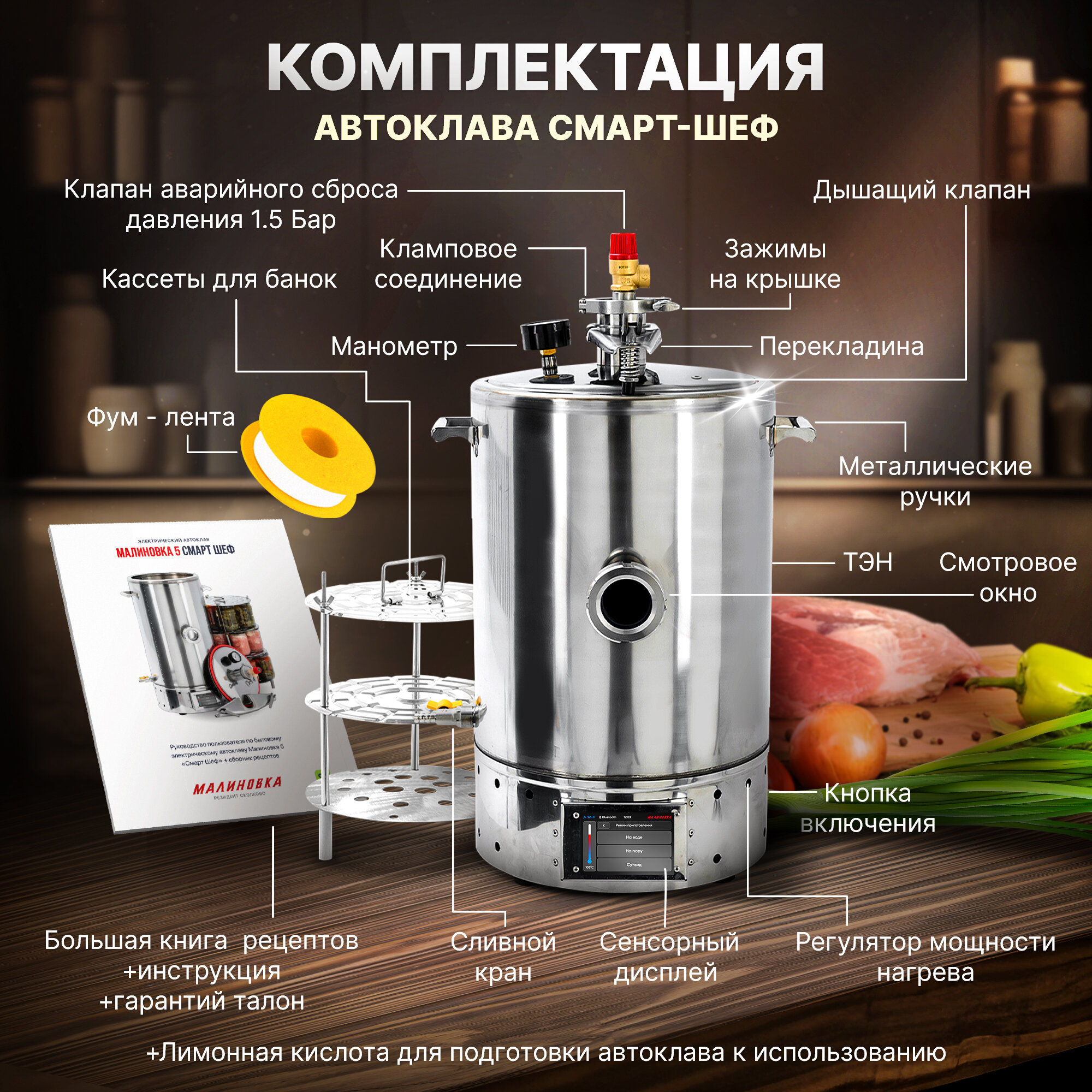 Автоклав электрический Малиновка 5 Смарт Шеф 26л: сравнение цен, характеристики, фото, актуальное наличие и цены.