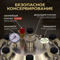 автоклав паровой для консервирования домашний, фальшдно для автоклава, манометр, аварийный клапан, цифровой термометр, паспорт с инструкцией, книга рецептов